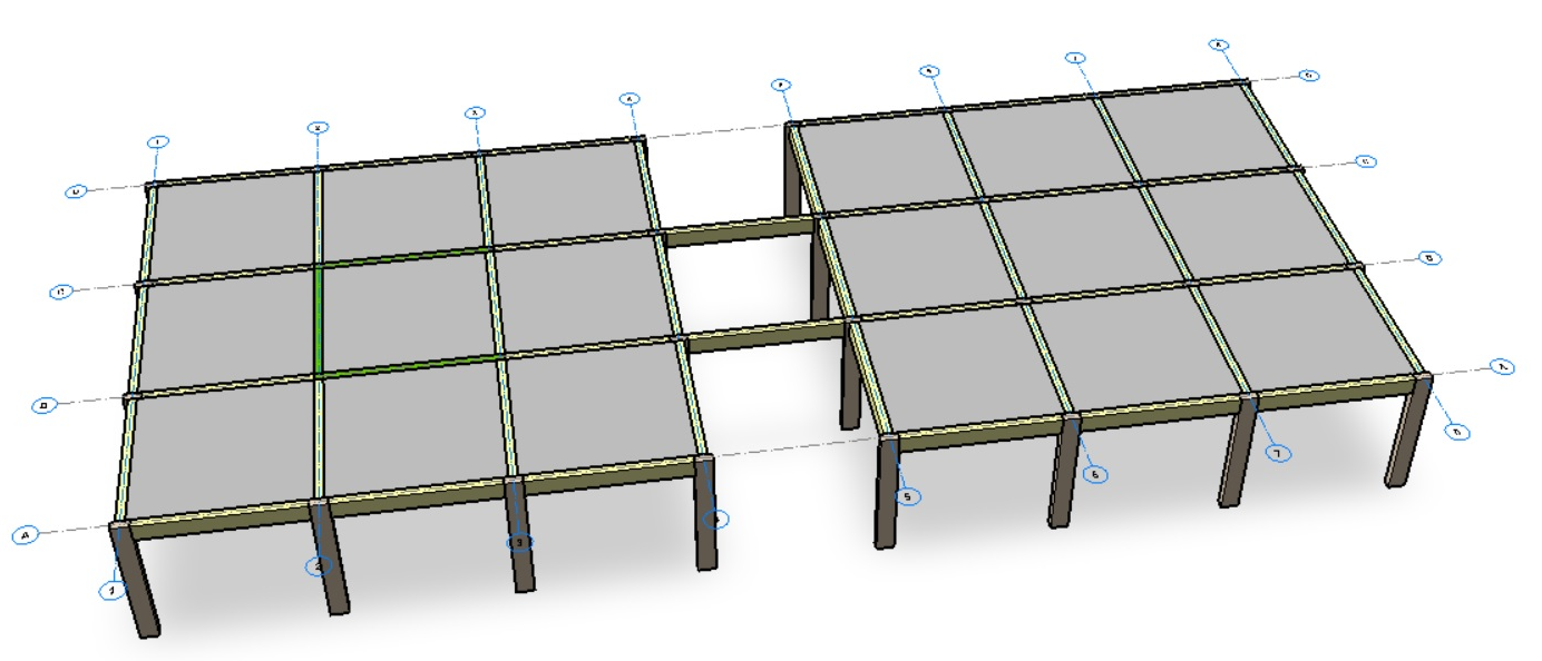 the diaphragm action between the two areas by using default option Slabs to Define Rigid Diaphragms.
