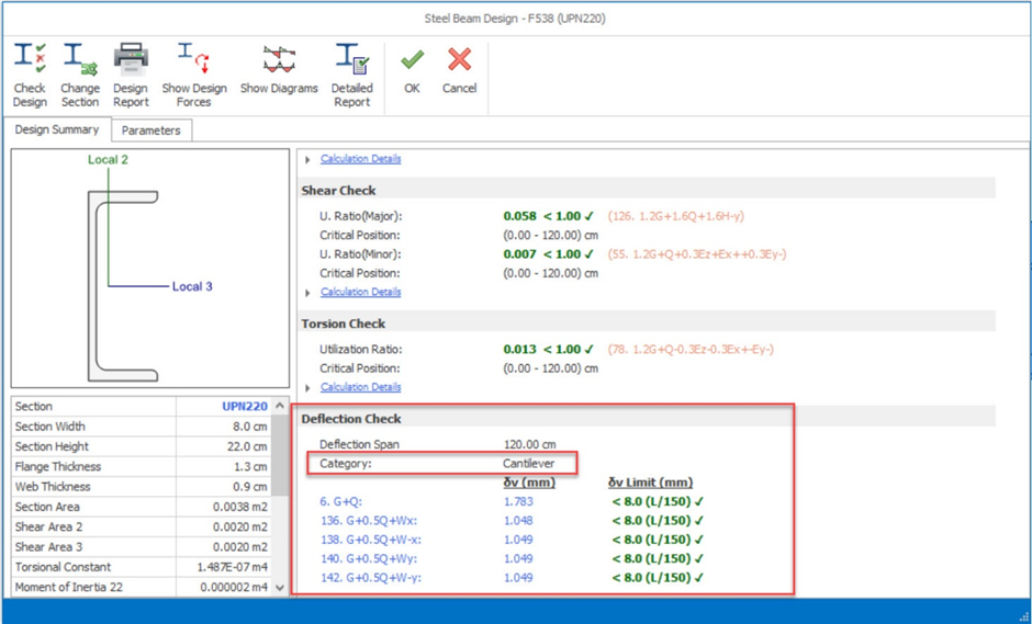 - For reinforced concrete cantilever beam, this is to ensure the design & RC detailing is correct according to the chosen code. This includes the deflection limit check which is automatically determined according to the chosen code (no settings to manually input in the limit).